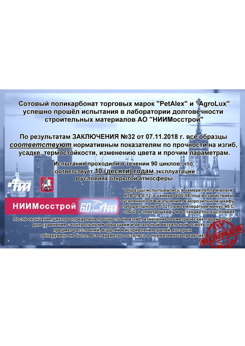 - Весь поликарбонат с качественной УФ-защитой