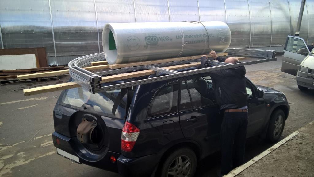 САМОВЫВОЗ. Вы также можете самостоятельно забрать теплицу с нашего склада в Советском районе. Отгрузки производятся с понедельника по пятницу с 9 до 17 часов. Для перевозки теплицы вам потребуется автомобиль типа "Газель" с кузовом длинной от 3 метров (торцы и дуги теплицы неразборные и имеют габаритные размеры 3х2 метра), либо легковой автомобиль с прицепом или верхним багажником. Необходимо также наличие у вас стяжных ремней, веревки и двух брусков длинной не менее 3 метров.
